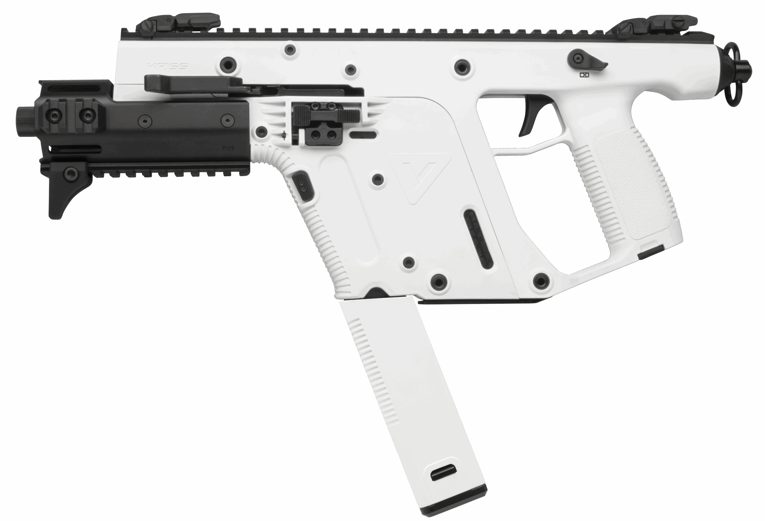 The KRISS Vector SDP is the ideal choice for personal protection and home defense. The short barrel and quick detach sling swivel make transportation simple and it can be stowed away inconspicuously. Like all KRISS Vector firearms the SDP is fed with full size Glock magazines offering cross compatibility of ammunition for a secondary or back up hand gun. – At the heart of the Vector SDP is the Super V System a nonlinear multilink blowback system designed to redirect recoil energy down. The Super V System in conjunction with the low bore axis reduce felt recoil and muzzle climb. – FEATURES: – Super V Recoil Mitigation System – Glock magazine compatibility – Low bore axis – Low profile flip sights – Full length picatinny top rail – Quick detach sling swivel – Model: Vector SDP – Caliber: .45ACP – Capacity: 15rds – Barrel Length: 5.5” – Overall Length: 16.75 in / 425 mm – Operating System: Closed Bolt Delayed Blowback – Action Type: Semi-Automatic – Color: Alpine – Weight: 5.9 lb / 2.7 kg – Barrel Material: 4140 Chrome Moly – Barrel Finish: Black Nitride (QPQ) – Twist Rate: 1:10” RH – Thread Pitch: M16X1 LH – Trigger Type: Pivoting Single Stage