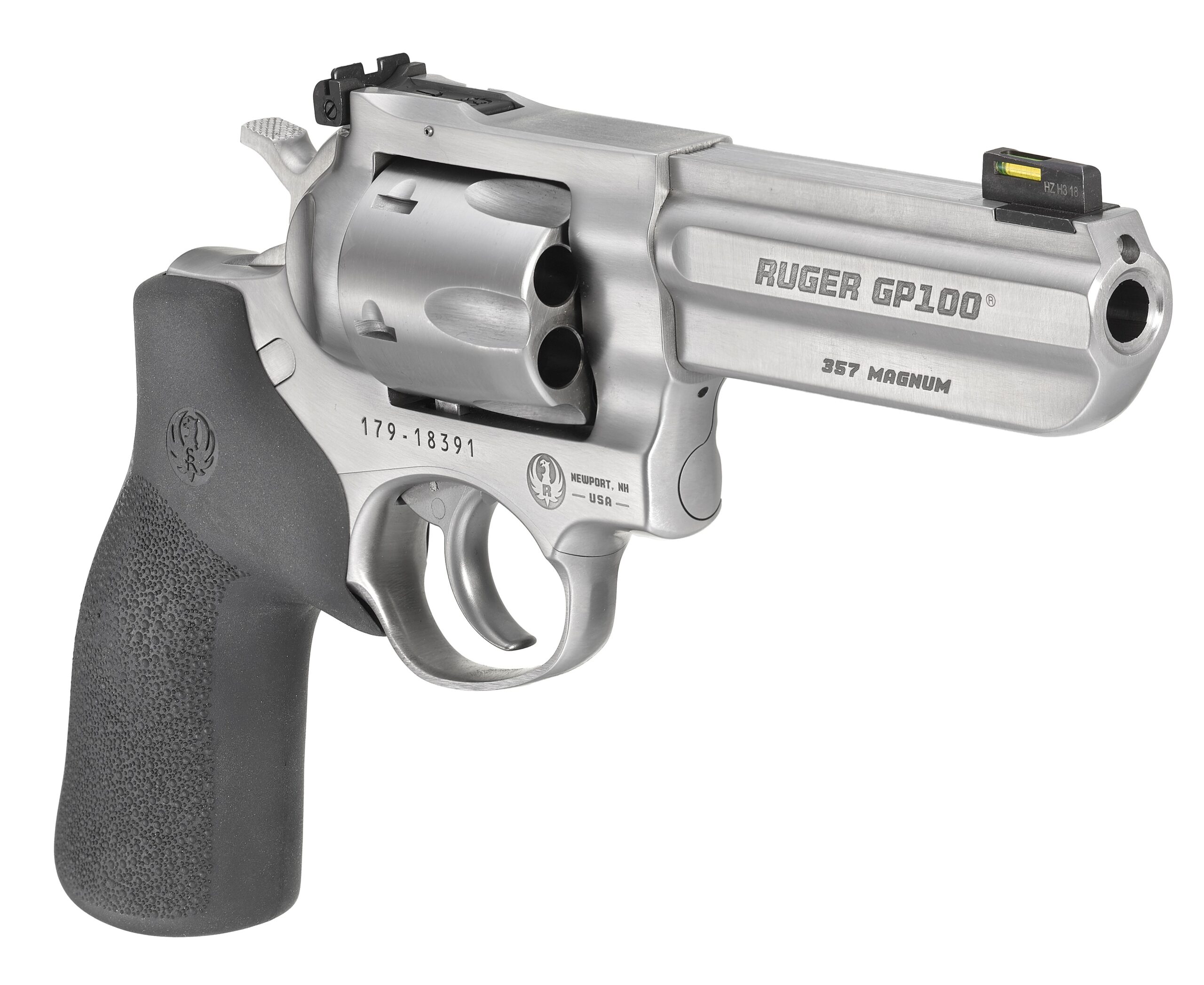Ruger GP100 Match Champion, TALO Edition, Double Action, Revolver, 357 Magnum, 4.2″ Barrel, Steel, Satin Finish, Silver, Rubber Grip, HiViz LiteWave Fiber Optic Front and Adjustable Rear Sights, 6 Rounds 01786