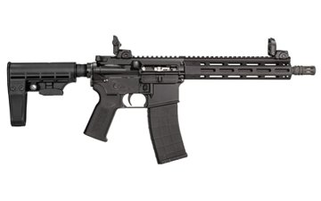 Tippmann Arms Company M4-22, Elite Pistol, Semi-Automatic Pistol, AR, 22 LR, 9″ Threaded Barrel, 1/2×28 Thread Pitch, Aluminum MLOK Handguard, Matte Finish, Black, T5 Pistol Brace, Front/Rear Flip Sights, 1 Magazine, 25 Rounds A101088